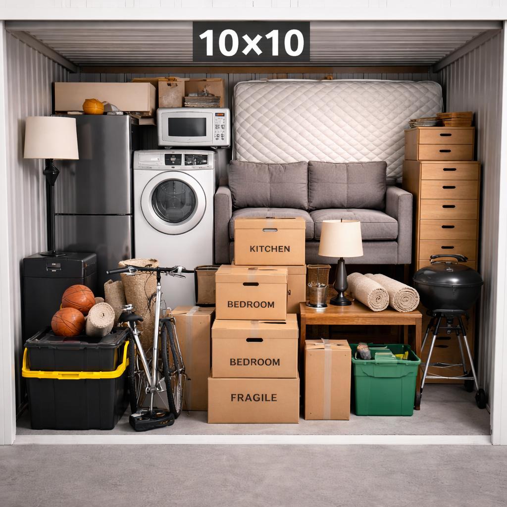 This unit size is best for long-term storage, major moves, or combining household and vehicle storage.
